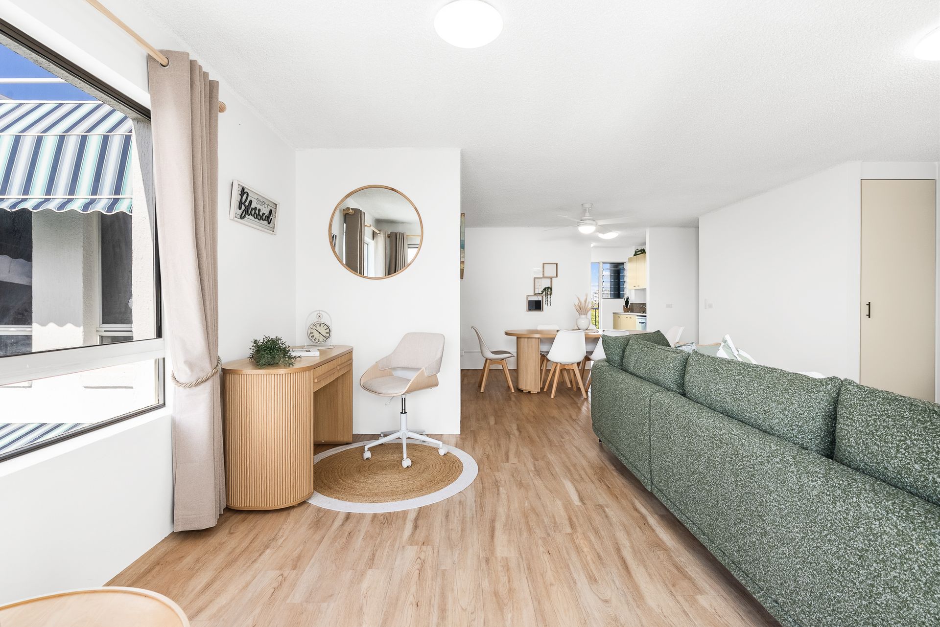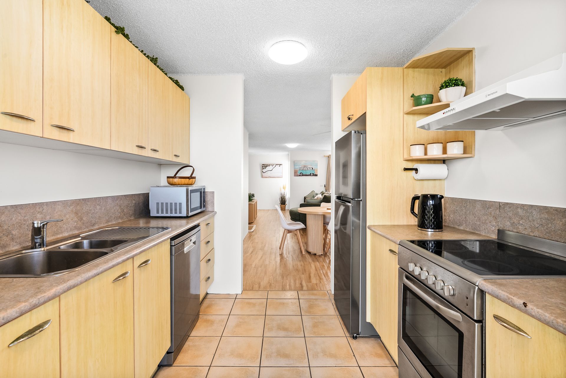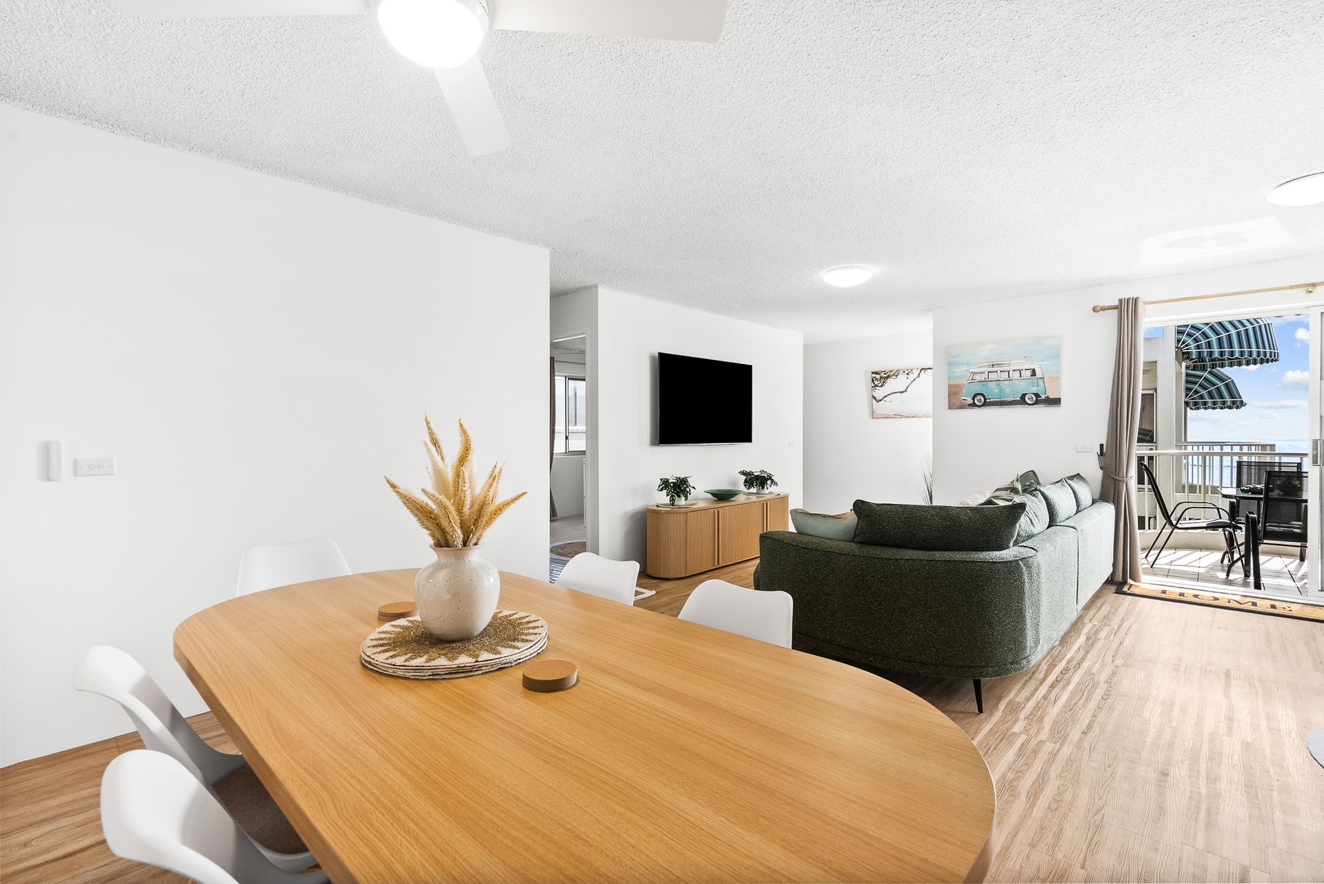 Wake up to the beauty of sweeping views from both the north and south facing balconies. Gaze over Watson Park toward Shelly Beach, or follow the shoreline to Moffat Beach, where the ocean horizon never fails to inspire. Bathed in natural light and cooled by refreshing cross-breezes, the apartment exudes a calming atmosphere, making every moment feel like a true escape.