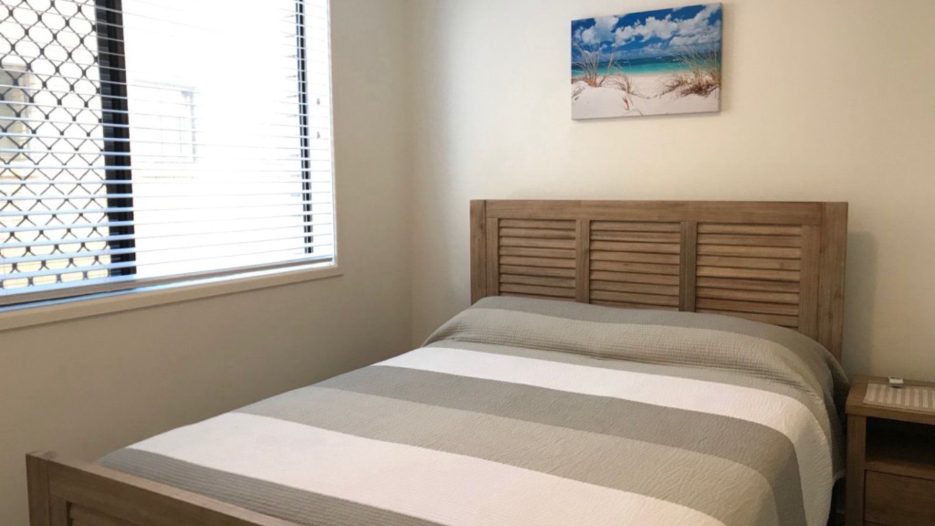 This 2nd floor unit has been renovated, and has excellent views over the ocean, Bribie Island and Pumicestone Passage. It sleeps 4 people in a queen and double bed and features air conditioning, free Wi-Fi, a microwave, dishwasher, large balcony and full size shower (no bath). There are ceiling fans in the bedrooms and a high-quality pedestal fan in the lounge.