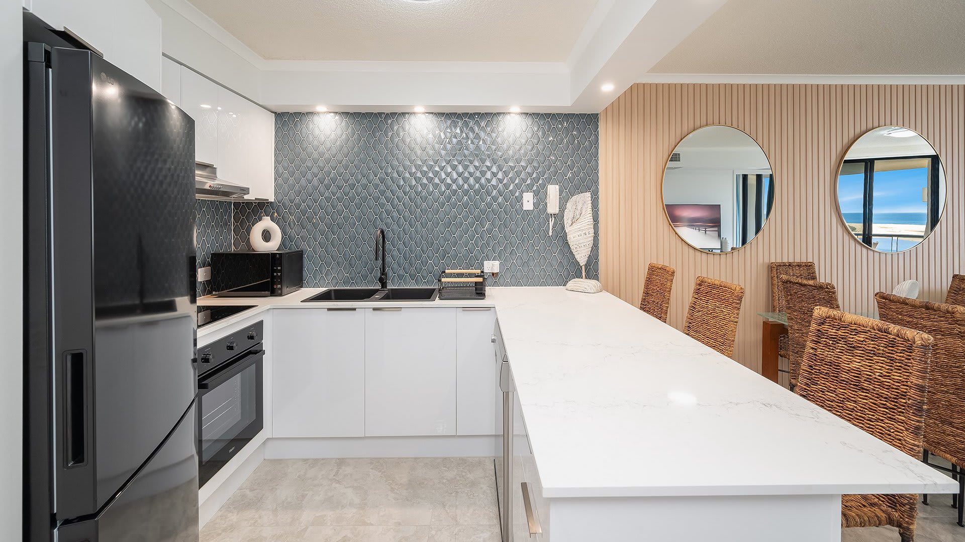 Unit 104 Grand Pacific is positioned right opposite the waterfront, looking out to the Pumicestone Passage and only 50 metres from Bulcock Beach.