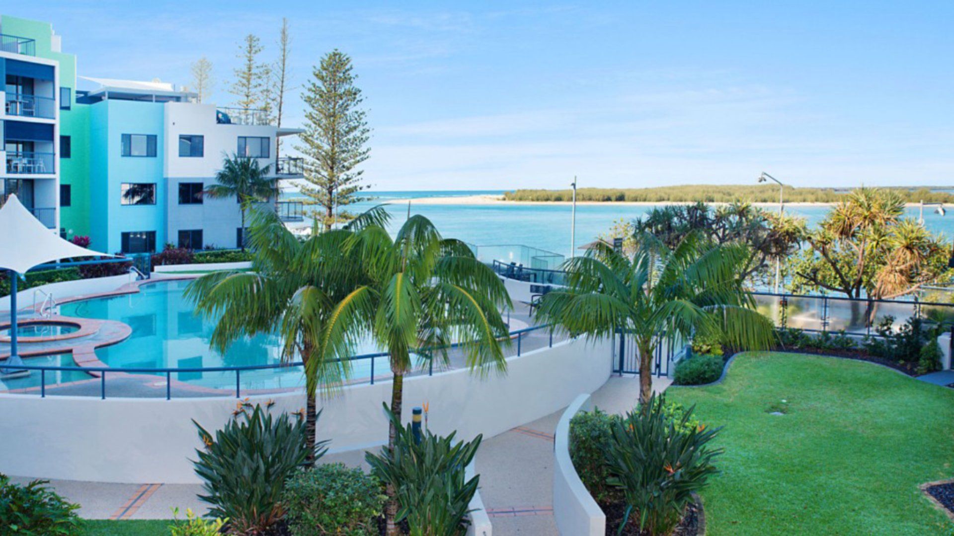 Top quality apartment located in the waterfront resort at 'Grand Pacific', boasting beautiful views over the Pumicestone Passage and Bribie Island from your balcony and living area.