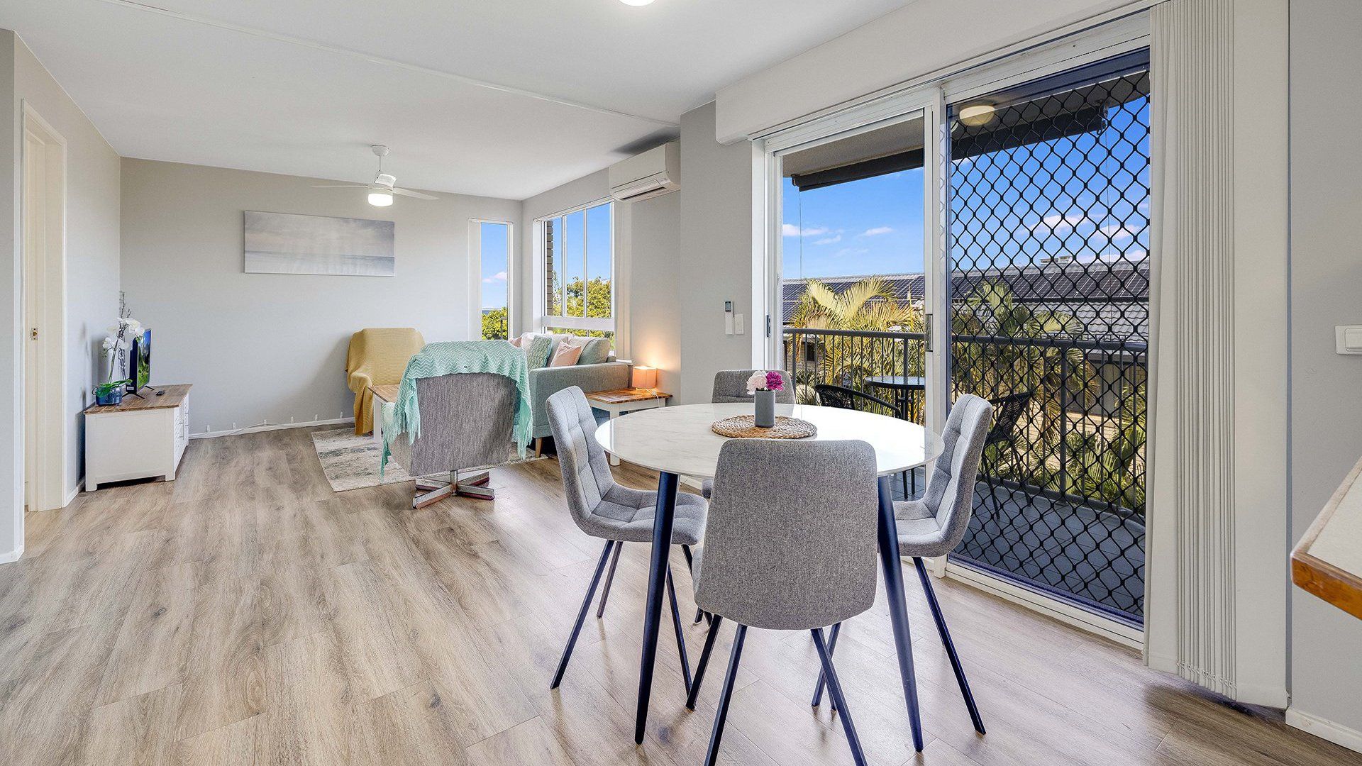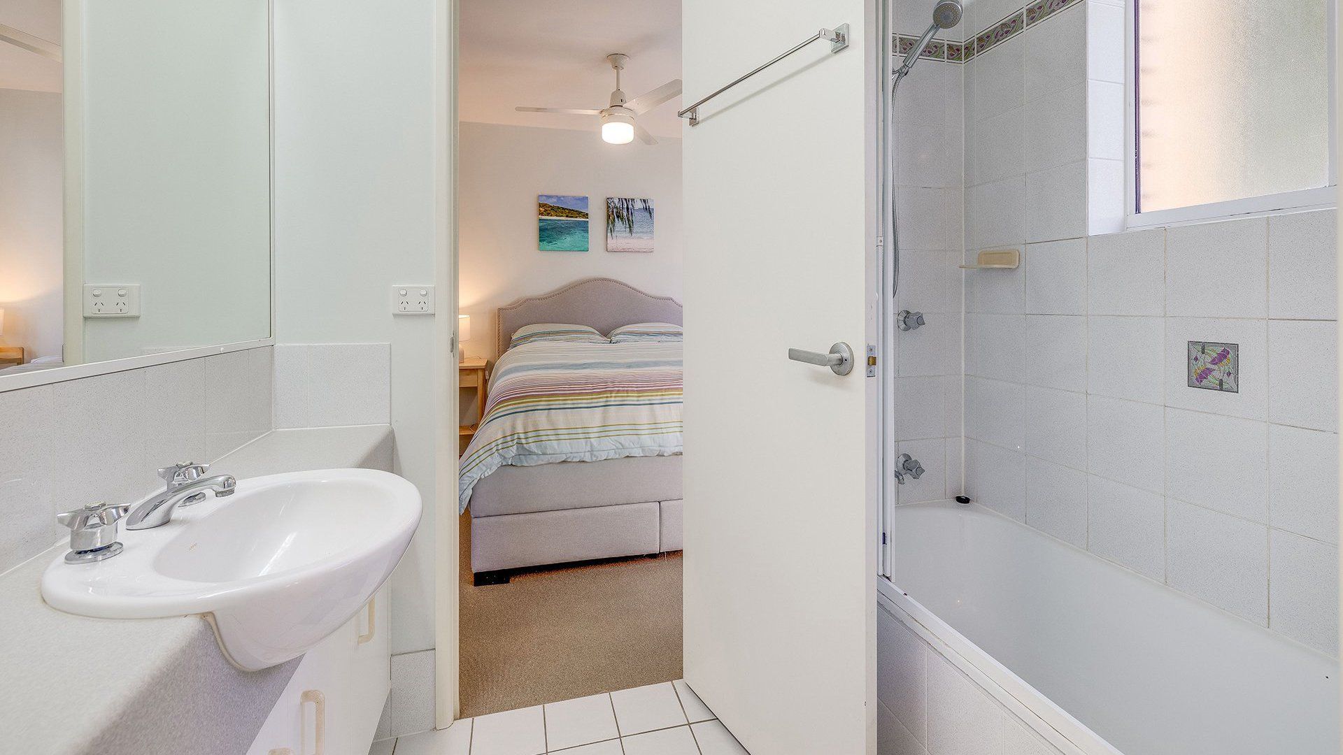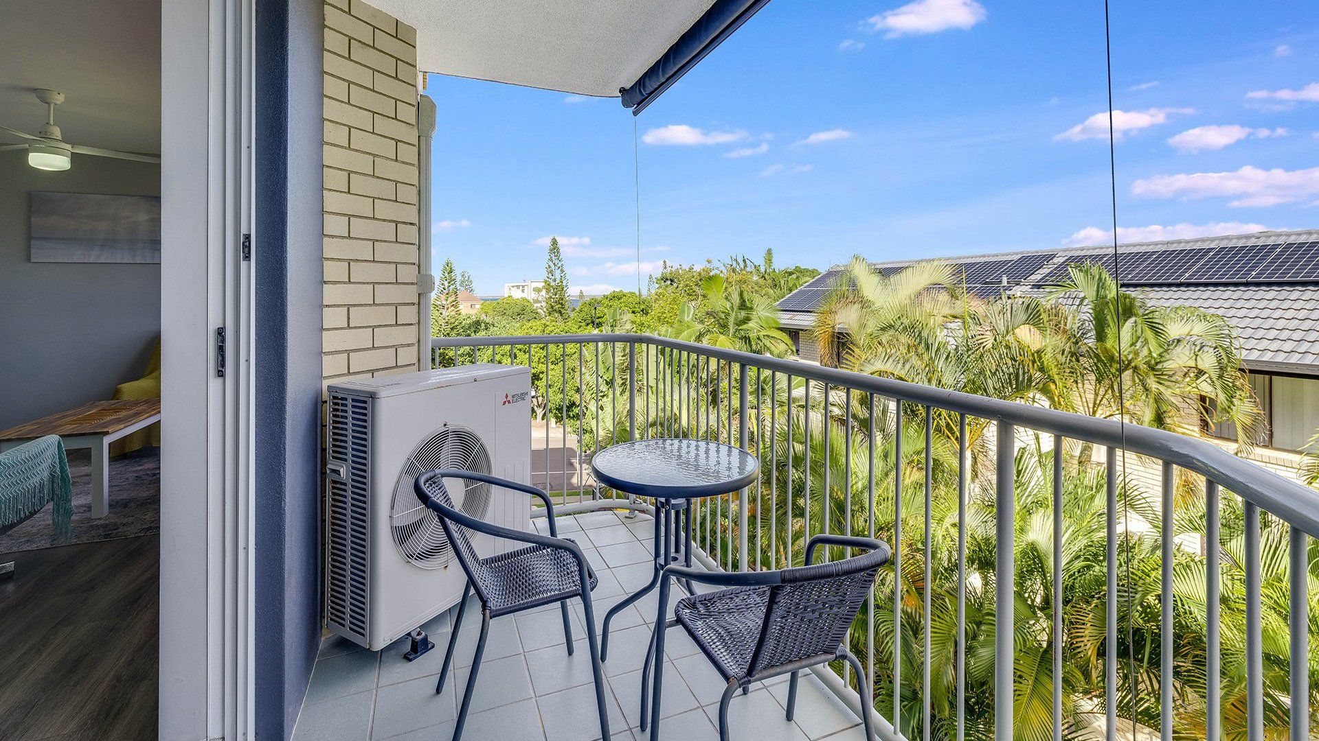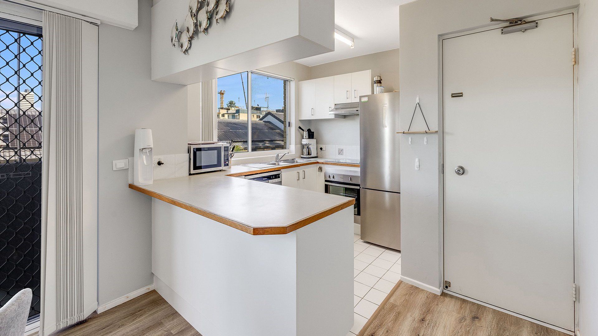 It will accomodate 4 guests in 2 Queen beds, with a two-way bathroom off of the main bedroom. The living area offers a light and airy space with TV and air-conditioning. The kitchen is self-contained with a dishwasher, microwave coffee machine and soda stream. The unit is fitted with a water filter for all taps in the bathroom and kitchen.
