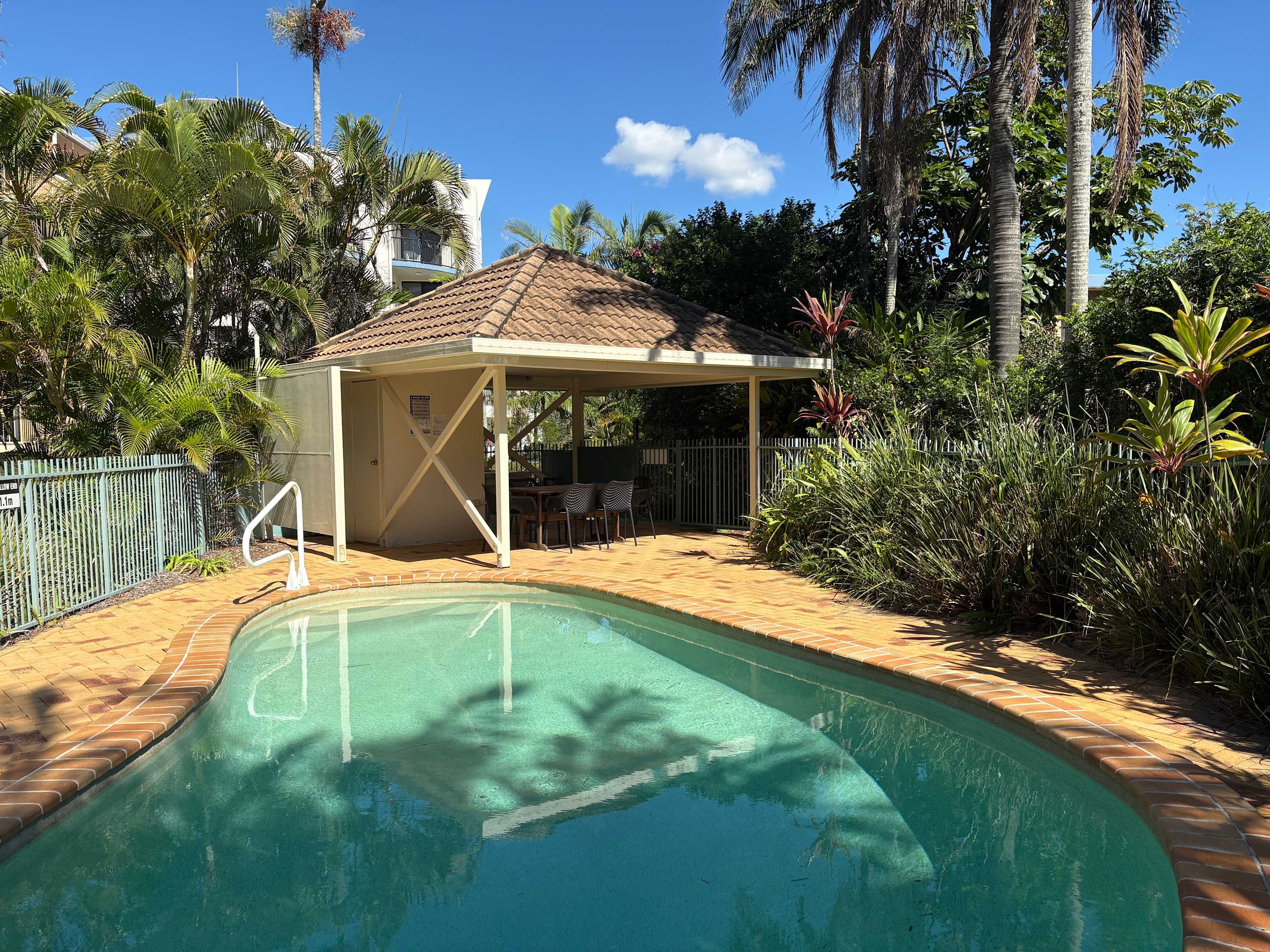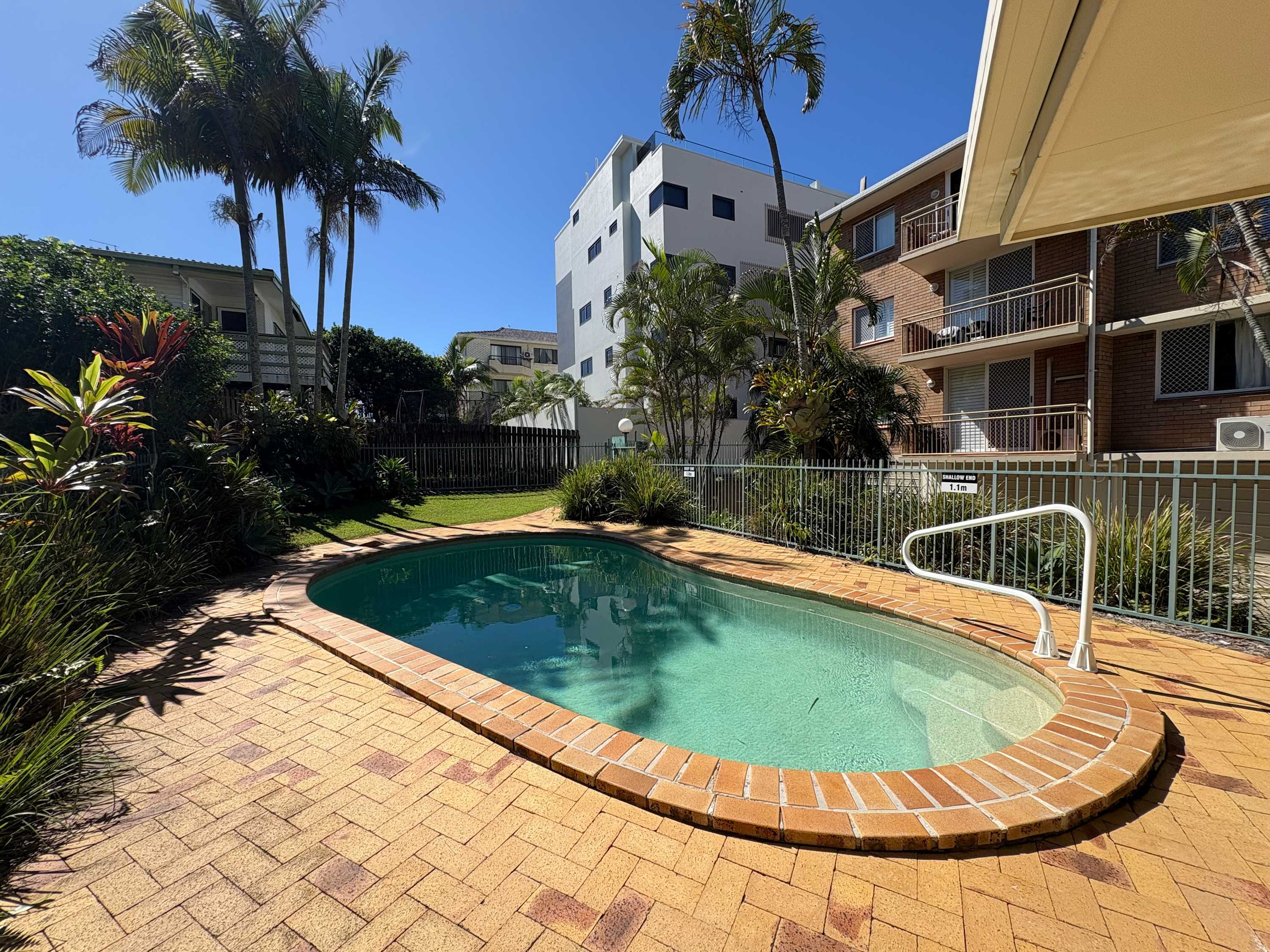 Other features include a TV, DVD player, dishwasher, microwave, washing machine, dryer and air-conditioning in the main bedroom. The spacious front balcony also gets the morning sun. The sunny back balcony overlooks a tropical pool with a shared BBQ and seating area. This unit is located on the 1st floor with just one flight of stairs to walk up. There is a lock up garage with direct access into the complex. The garage height 1.75m, width 2.45m.