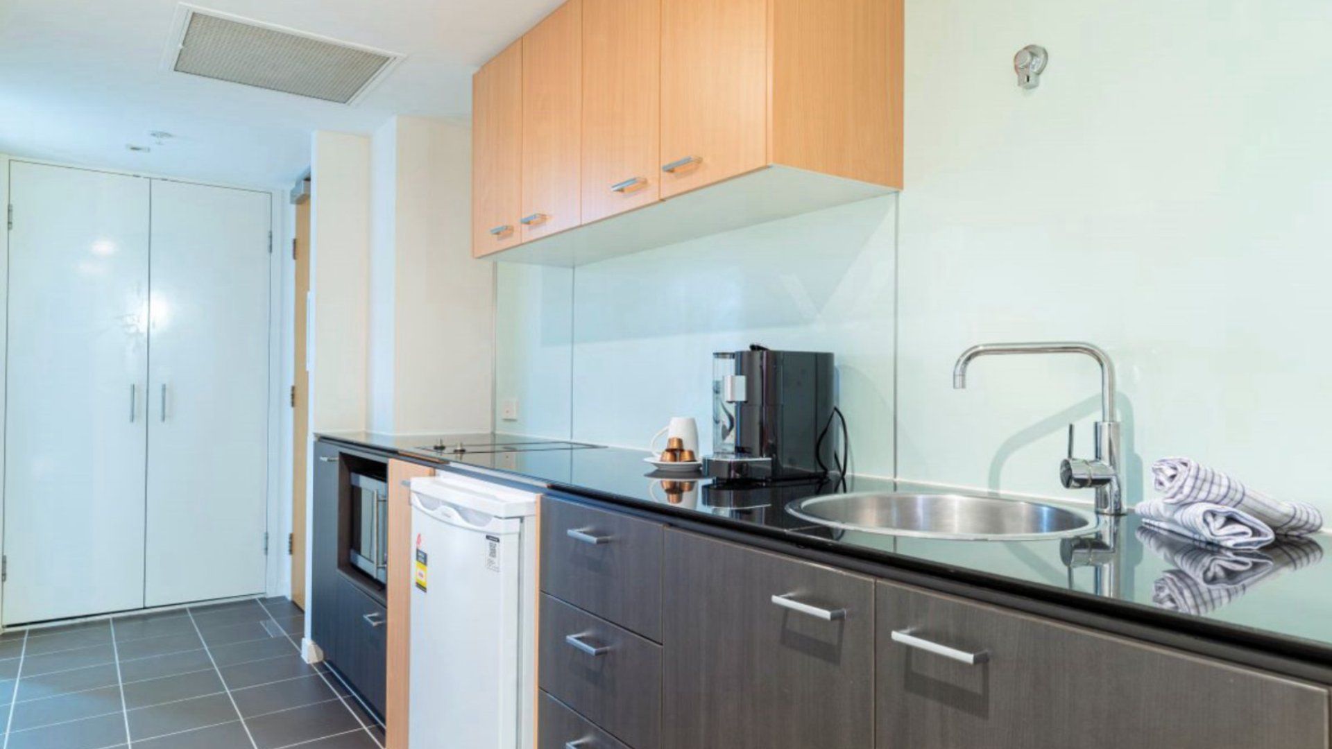 Unit 424 is a stylish accommodation suite that evokes relaxation and/or holiday adventures with fantastic amenities and your own private spa bath to enjoy. This apartment has 1 bedroom with 1 x Queen bed, inclusive of the personal linen. There is 1 bathroom with walk in shower, toilet and spa bath. In the living area there is a smart HDTV and a pullout sofa bed (linen not supplied for soda bed and would be an additional cost to hire linen), ducted air-conditioning throughout the unit with kitchen including a microwave, small fridge with freezer, a two plate stove top and air fryer. There is also a dishwasher, washing machine tub & dryer in the laundry for your convenience.