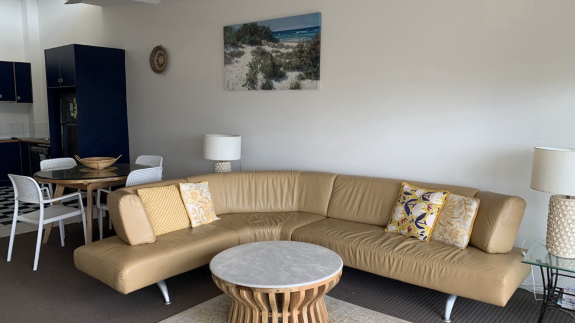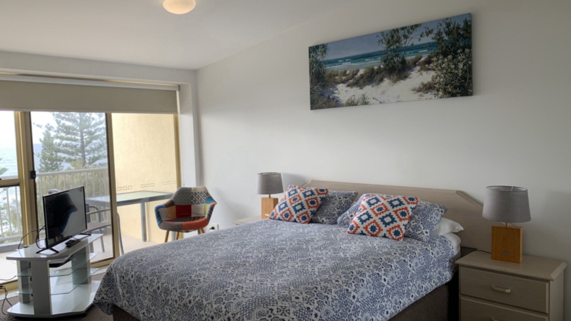 Unit 10 is stylish, spacious and with its high ceilings, boasts plenty of natural light. The unit features all the modern conveniences such as dishwasher, ceiling fans throughout, LCD HD Tv in the lounge and a SD Tv & Dvd player in the main bedroom. The unit will comfortably sleep 4 in a queen bed and 2 singles. The large main balcony has spectacular, panoramic views across the ocean and shipping lanes and is accessed by the lounge and main bedroom.