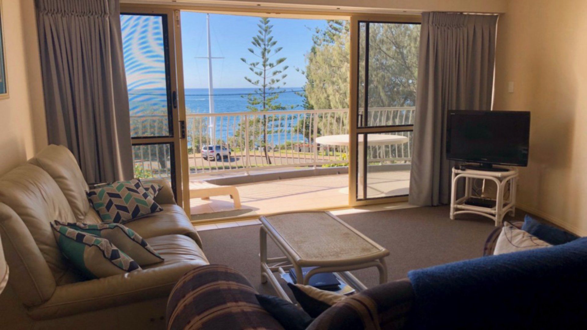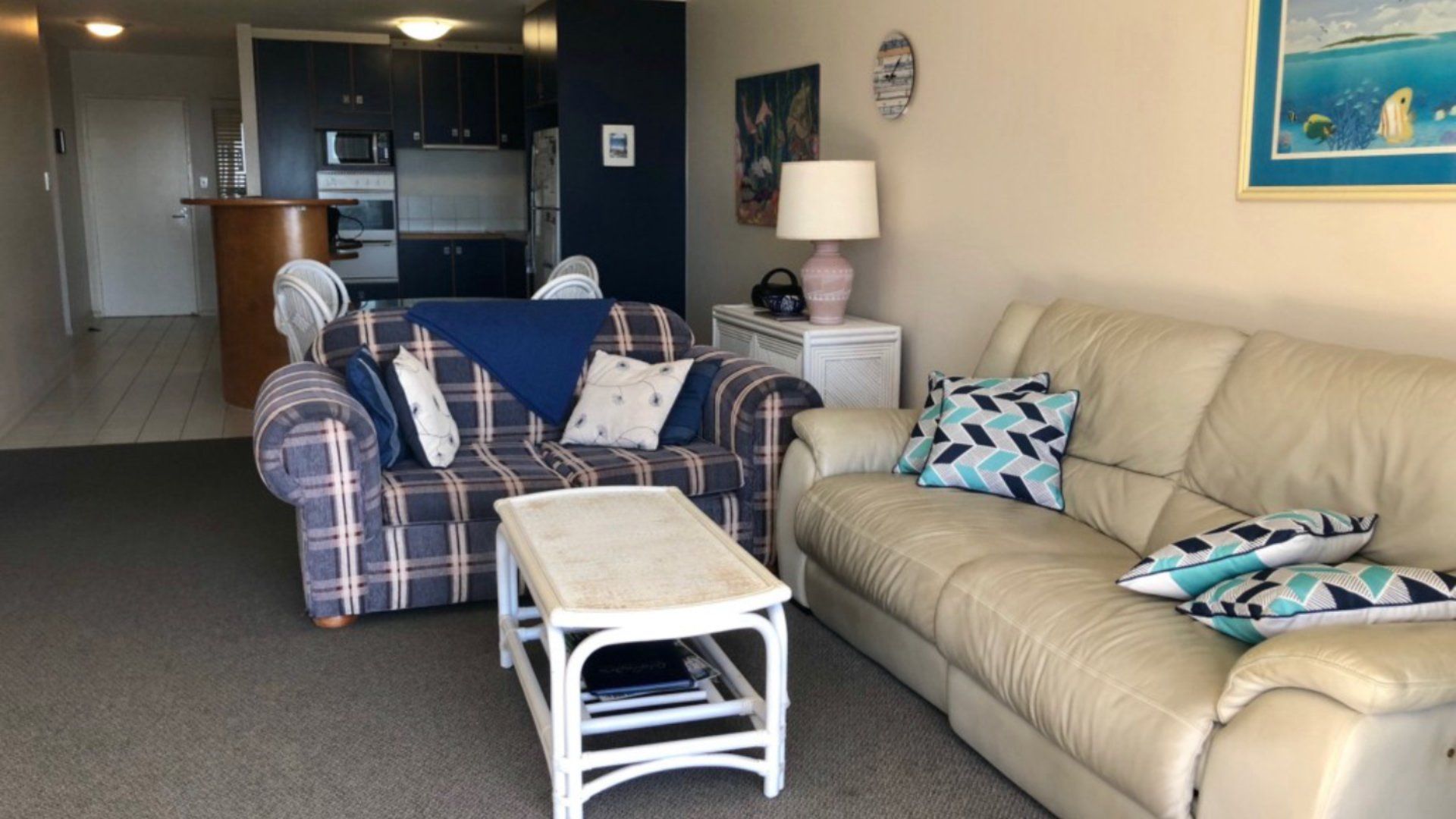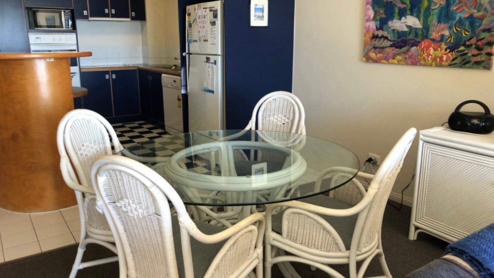 Unit 4 has 2 bedrooms and ensuite and is comfortably furnished throughout ensuring an enjoyable stay. The unit features all the modern conveniences such as dishwasher, ceiling fans throughout, LCD TV in the lounge and a large balcony. The unit will comfortably sleep 4 in a queen bed and 2 singles. The large main balcony has panoramic views across the ocean and shipping lanes and is accessed by the lounge and main bedroom.