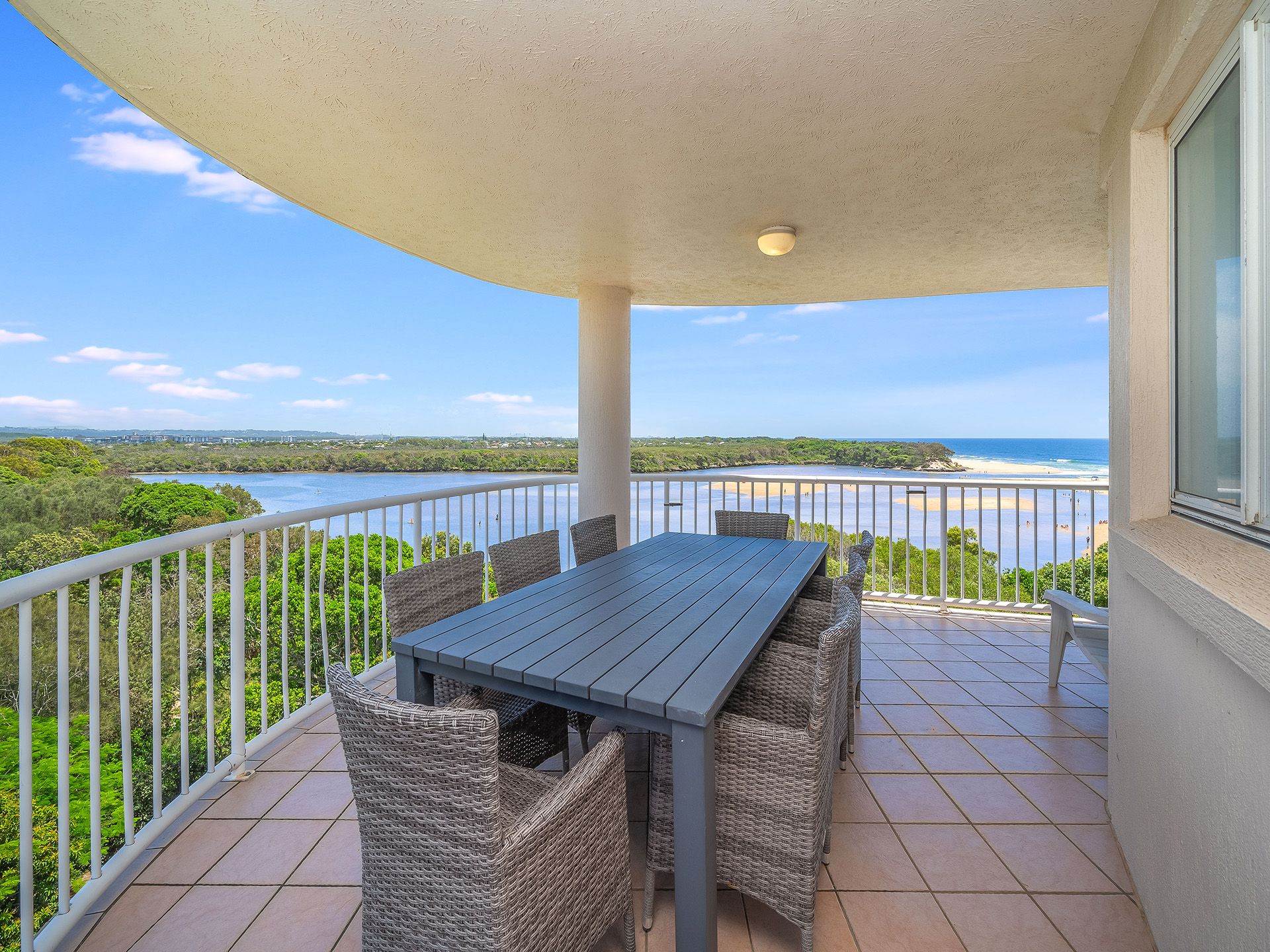 Imagine yourself relaxing on a huge, sun soaked balcony, overlooking the beautiful Currimundi Lake and the ocean beyond, whilst listening to the birds sing in the trees and parklands below.