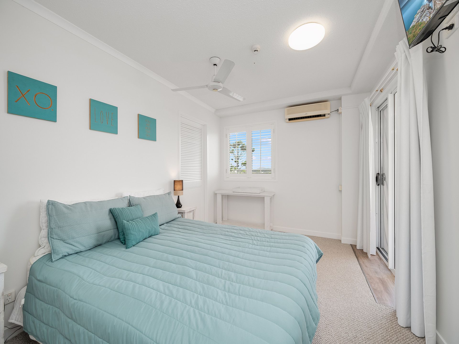 The main bedroom and 3rd bedroom also each have a smaller balcony, with views to the North and towards Moffat Beach in the South.