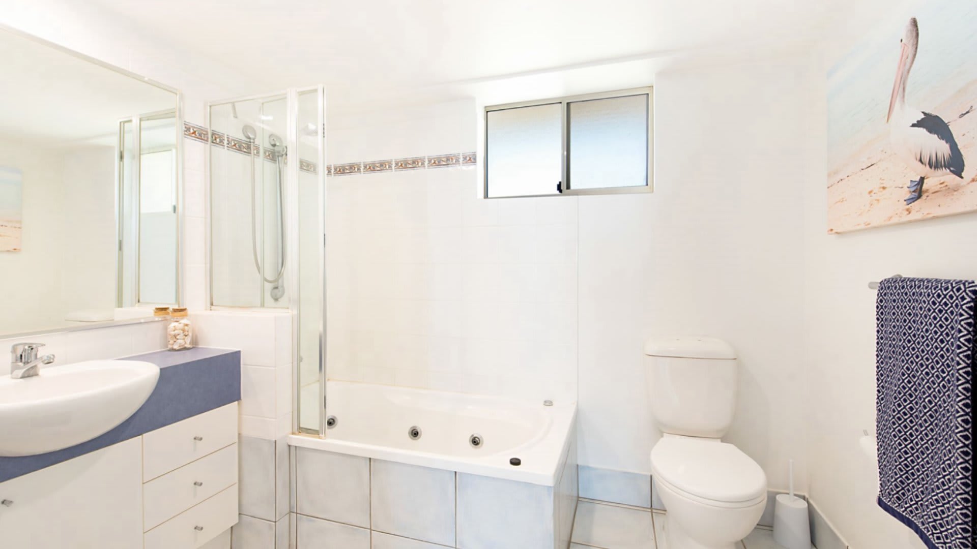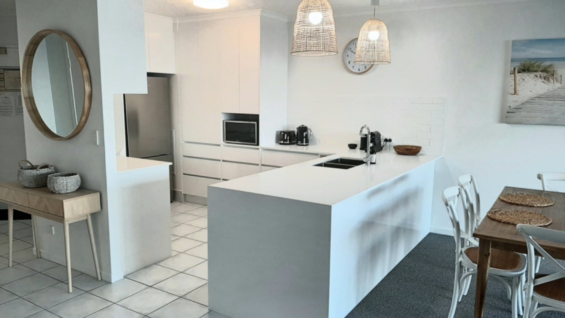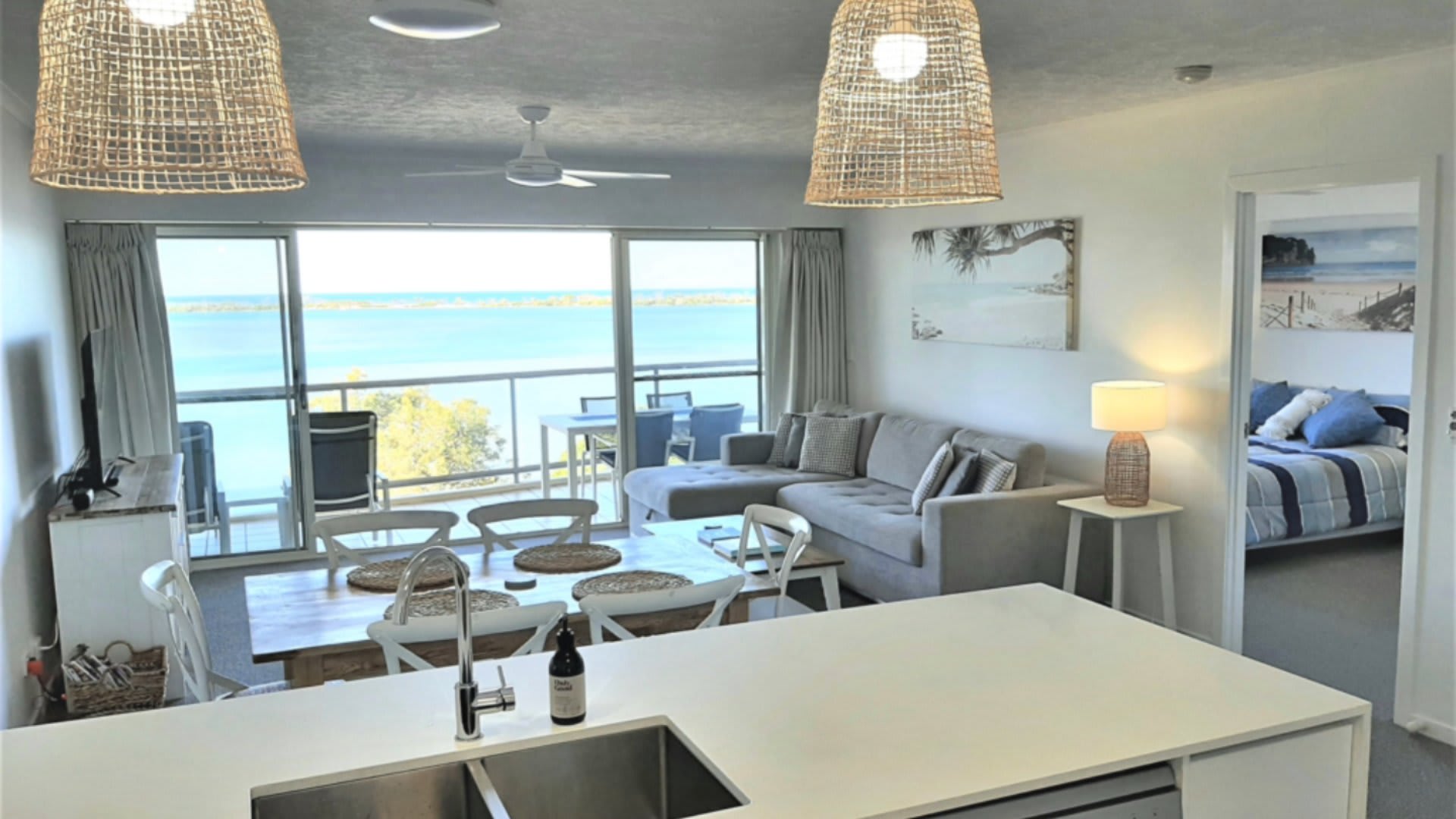 You will love the coastal, beachy decor and modern kitchen in Unit 508. From your balcony with 6 seater outdoor setting and 2 sunlounges, enjoy watching the passing parade of ships, boats and kite surfers. Swim, fish, paddle board and kayak at the beach directly opposite.