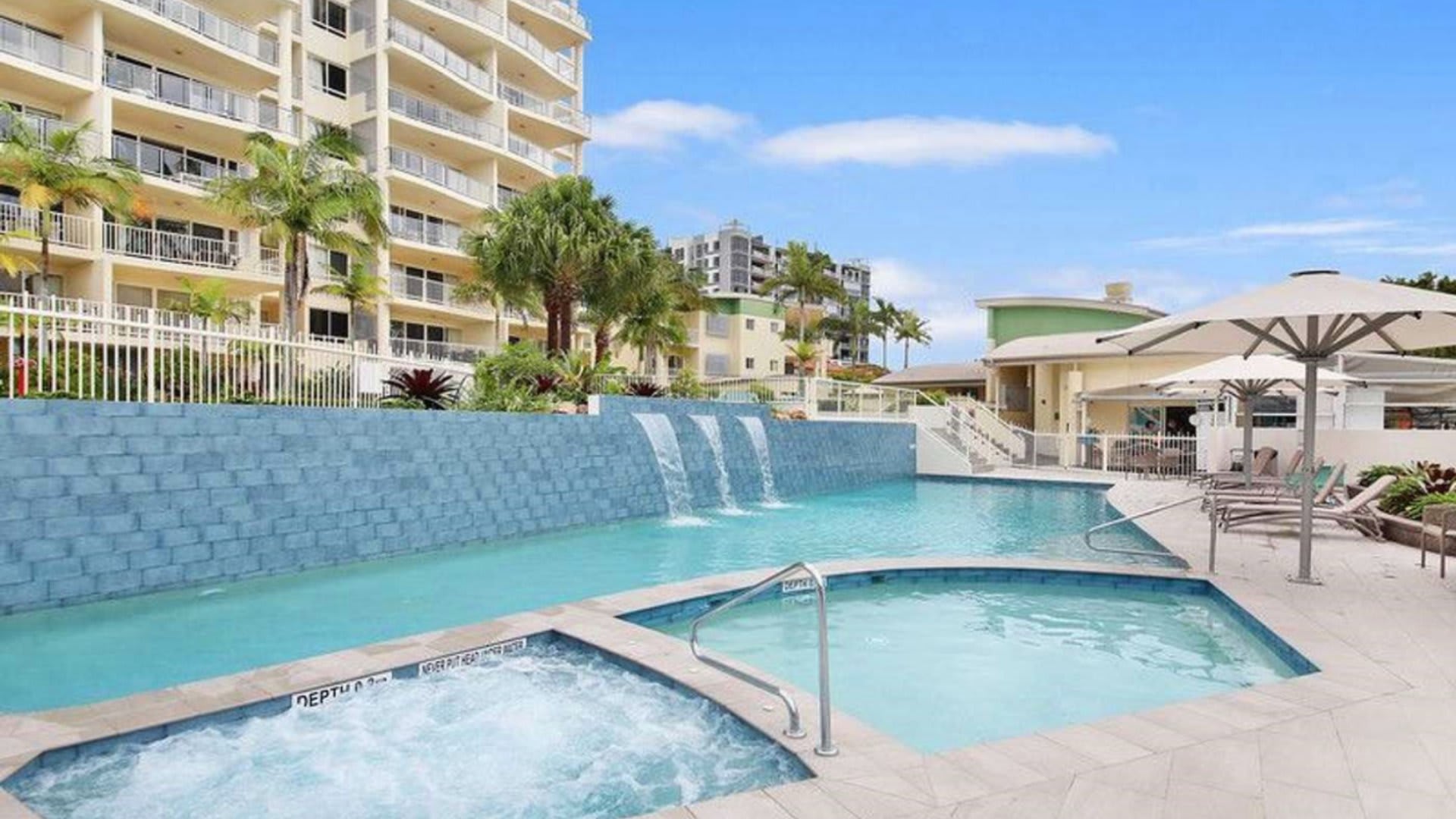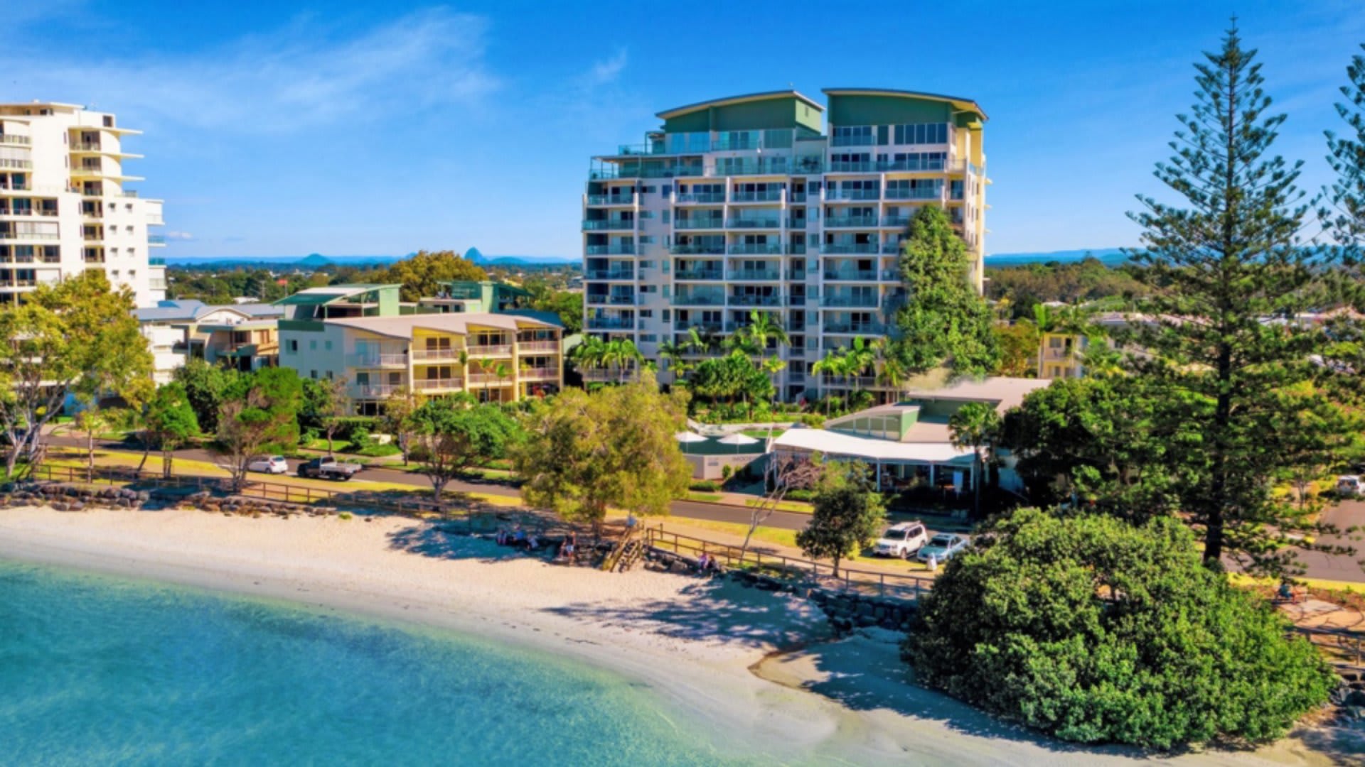 Enjoy spectacular views over Caloundra, Golden Beach, Pumicestone Passage and Bribie Island from the spacious balcony, living area and main bedroom at this beachfront resort.
